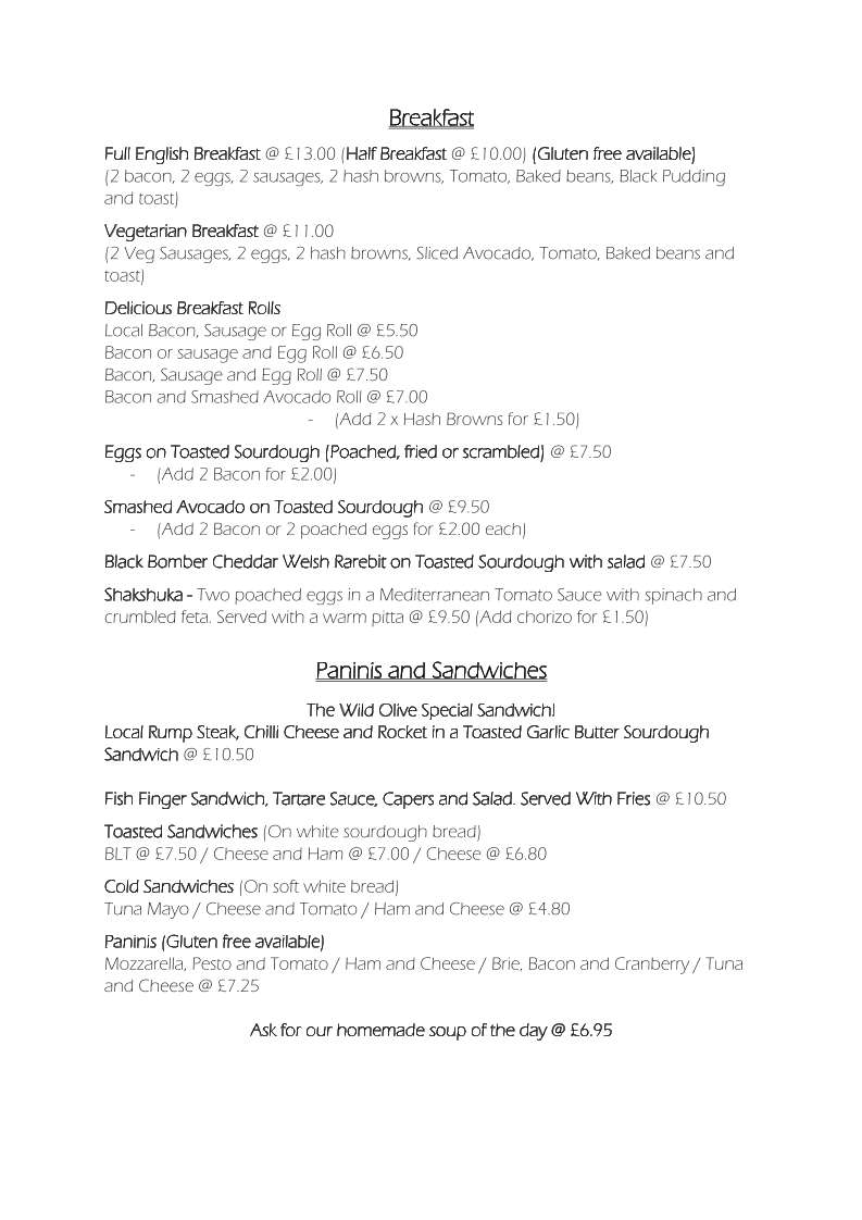 The Wild Olive at Butts Farm Menu