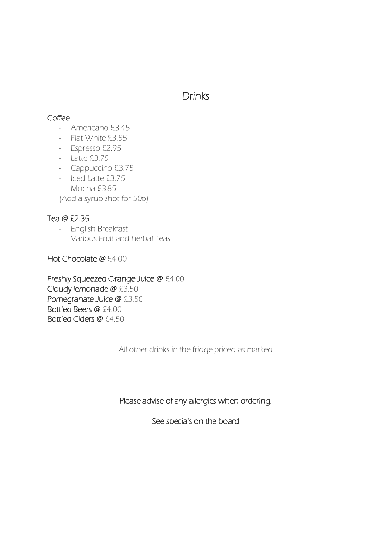 Canyon Coffee & Cafe Menu