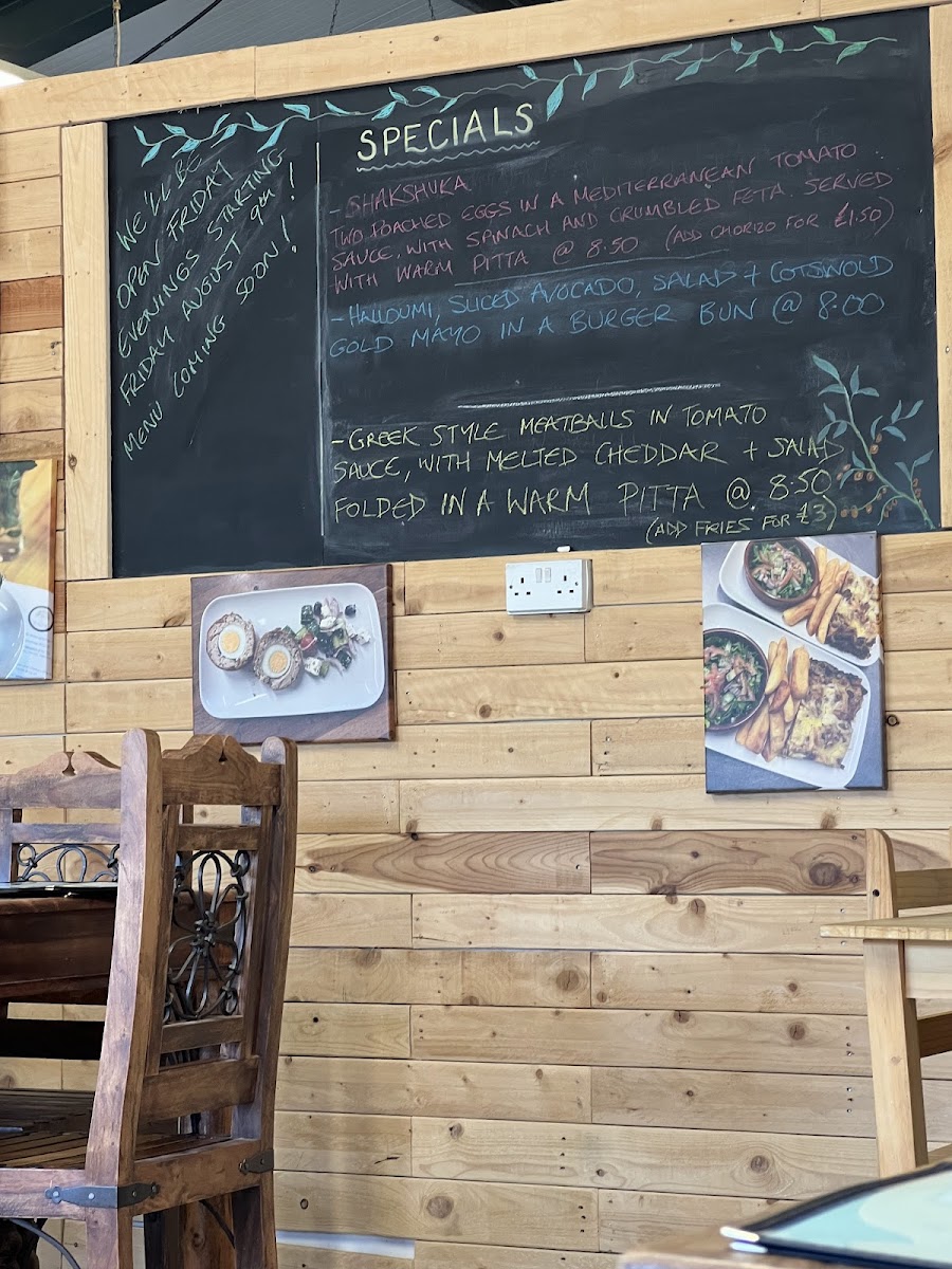 Welcome to The Wild Olive at Butts Farm, a delightful café nestled in Cirencester, where the charm of countryside dining meets culinary artistry. The menu is a vibrant tapestry of flavors, offering hearty breakfasts like the Full English and Vegetarian options, perfect for a morning boost. For lunch, indulge in the Greek Gyros Pitta Wrap or the succulent Chicken Parmigiana, both showcasing fresh, quality ingredients.